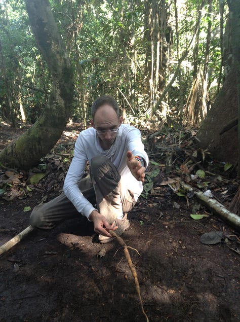 We collected twenty-five chacruna plants that morning. We took them out of the earth, roots and all, to add to our medicinal garden. I walked back to the boat next to Luis. We were in good spirits as our walk had been fruitful. We joked about me not being able to find the plants so quickly, and as we walked, I was not paying a lot of attention to the path.